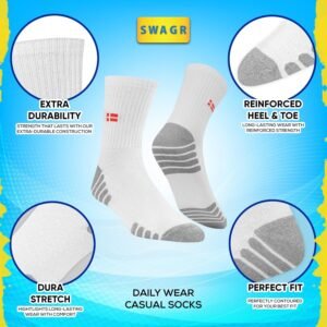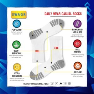SWAGR Sports Crew Socks for Men Premimum Cotton Athletic Socks, Pack of 3, Free SizeSWAGR Sports Crew Socks for Men Premimum Cotton Athletic Socks, Pack of 3, Free Size